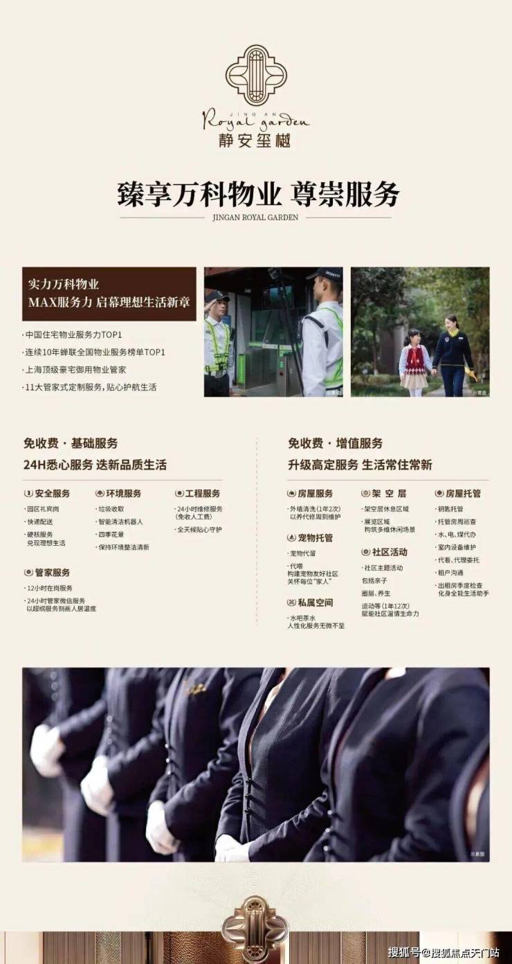 未来「静安玺樾」将由万科物业管理,拥有多年豪宅管理经验的万科豪宅级物业服务体系,蝉联行业10年top1,在提供社区日常维护、安保以及管家服务的基础上,还将提供包括外墙清洗、宠物托管、房屋托管、社区活动等增值服务!交付才是体现社区品质的开始!
