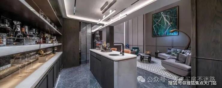 招商臻境,车行入口同样花了极大的心思进行雕琢。相比较市场普通的墙面漆,整个入库车道采用了难得一见的全铝板吊顶与通铺,配合追光式的灯带设计,车辆缓缓驶入,铝板的高级质感与柔和追光的仪式感一点点打开。