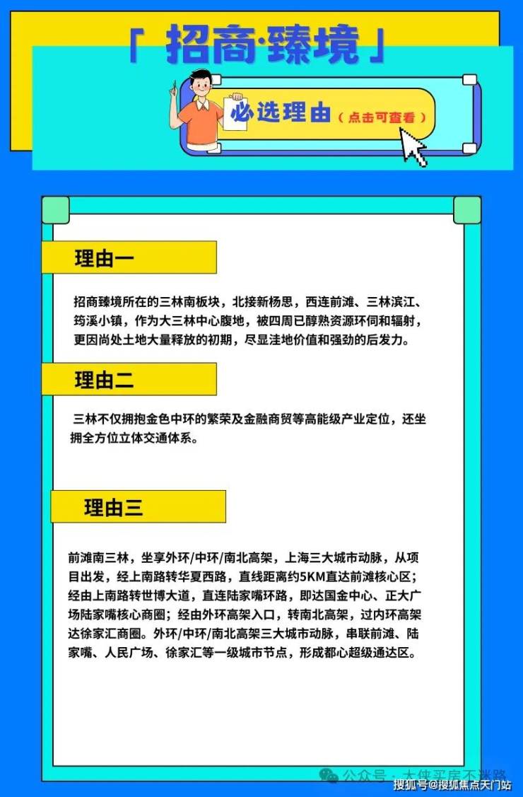 第一是潜力,三林之于世博前滩,就像是唐镇之于张江。在约16.8万/㎡的城市主中心辐射下,三林板块的价值将大踏步向前。要知道,与三林相比的次一级板块浦江镇、康桥,如今的新房及次新房价格都在约700-800万级,招商臻境与他们之间有着超200万+/套的剪刀差。 可见项目的性价比和项目未来的前景。