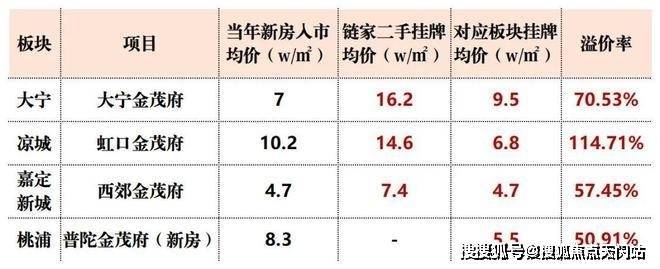 据贝壳数据统计, 金茂府与同板块二手房相比,挂牌均价比板块均价高出50%以上,最高溢价甚至突破114.71%!