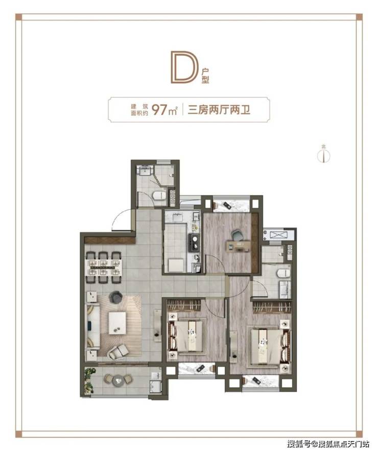 实话讲现在的户型都大同小异,户型图一贴您自己也能看得懂。但项目这个建面约97㎡3房只有去现场体会,才知道它的好。