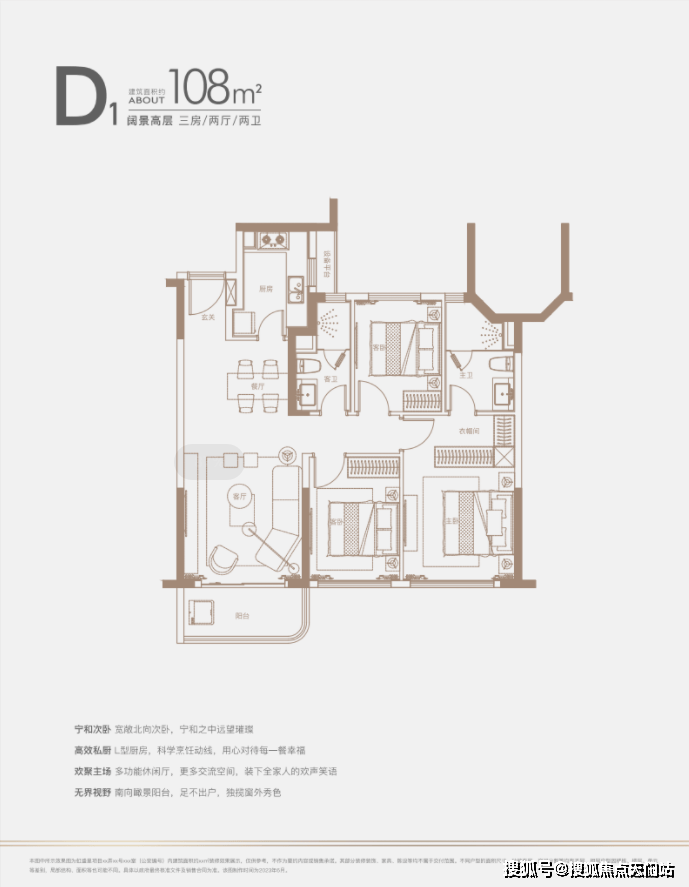 建面约140㎡四房:三开间朝南户型,南北通透,采光条件优质,客厅明亮宽敞,彰显大气布局。