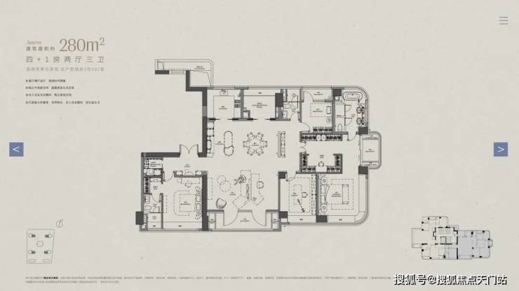 超面宽全能275户型 以中央殿堂级家庭厅重构家庭情感交互方式,双主卧级套房设计尊重不同代际的私密需求,从专属归家动线到生活动线,每一处空间转换都经过精心编排,重新定义了"一生之宅"的内涵。