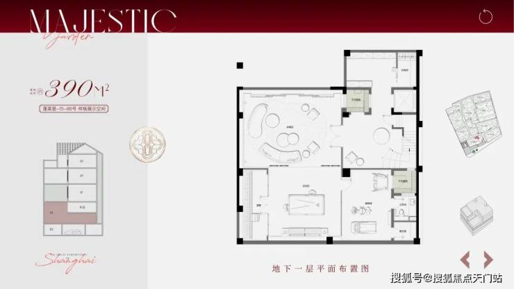 合院地上三层,面积段约270-500㎡,计合院82套。