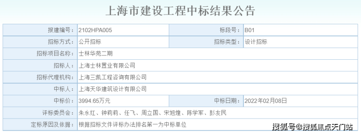 2022年2月8日,上海天华建筑设计有限公司以3994.65万元中标士林华苑二期地块设计项目!