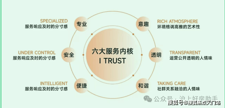 【保利虹桥和颂】全新作品,保利物业将品质服务品牌"亲情合院"深度融入日常生活,以"让家更暖"初心理念,围绕真、善、美、和四大维度,在社区落地呈现" I TRUST "六大服务体系,打造有生命的空间,有温情的社区,有质感的生活。