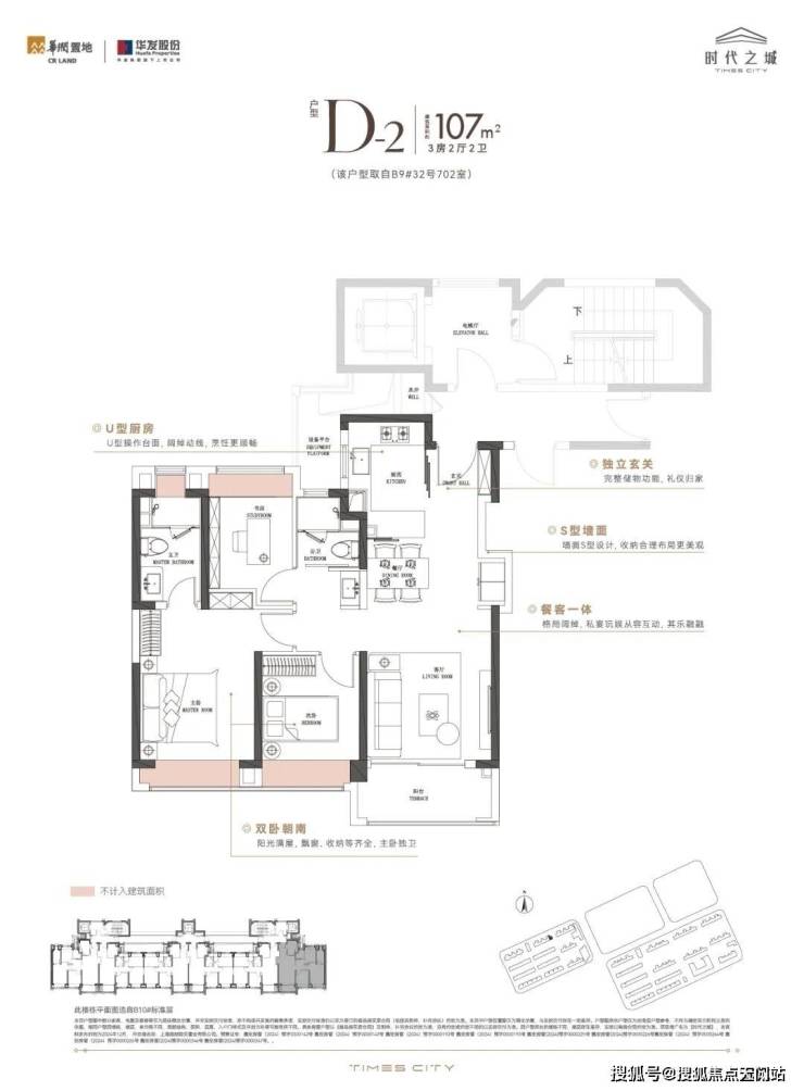 另外,细节方面S墙的设计,可以从容的放下一个双开门冰箱;主卧套房设计+巨兽级的收纳,让业主拥有更加私密的奢华生活..