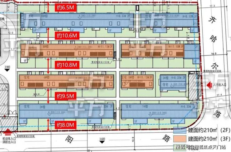整体平均楼层低于2.5层!同时楼栋之间的南北间距也极为宽敞。最大主体建筑之间的南北间距达到了惊人的约10.8米。