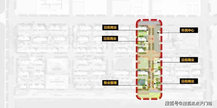 商业街:沿恭礼路设置商业店铺,创造形式丰富多样的时尚街区, 形成充满烟火气息的城市街道。