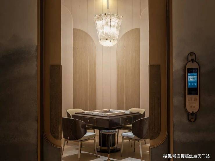 私宴厅&棋牌室 承载了业主宴请、聚餐、洽谈、品茗、娱乐等多元社交场景。私宴厅当中悬挂的石材,来自项目团队多番挑选,来自一个奢石展馆里的孤品,不仅拥有昂贵的蓝色色泽,天生的羽毛状纹理更是罕见!
