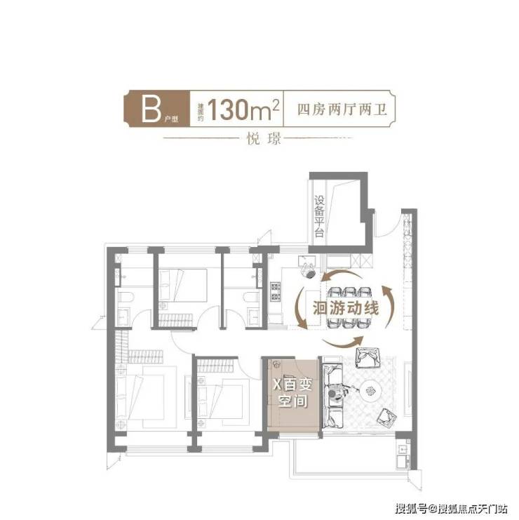 全景面宽+无界通厅+高附加值+收纳天花板, 130㎡的面积直逼140㎡的尺度感!