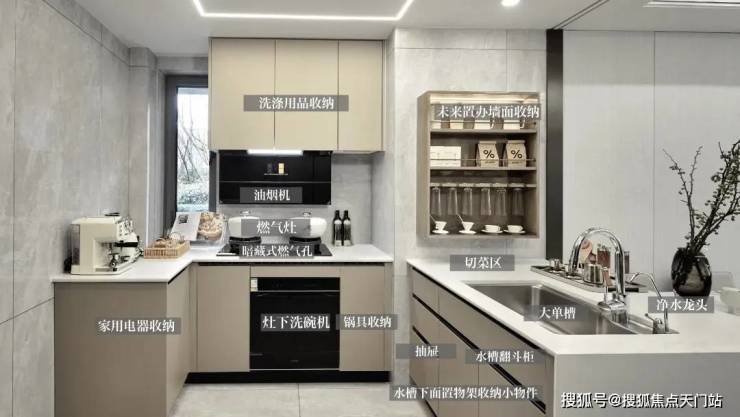 厨房吸油烟机、灶具和洗碗机三件套全部采用方太的高端系列, 这个油烟机使用时几乎是静音的,表面还有一层防油膜,手势无接触就可以控制开关,使用起来更加舒适、便捷!