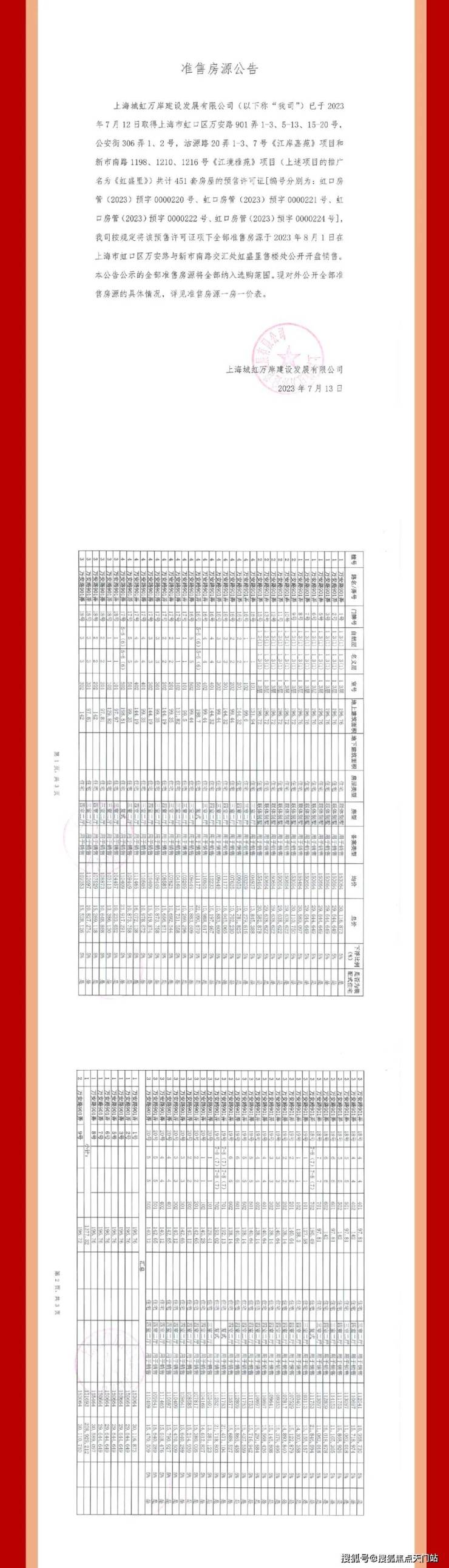 一期一房一价表:
