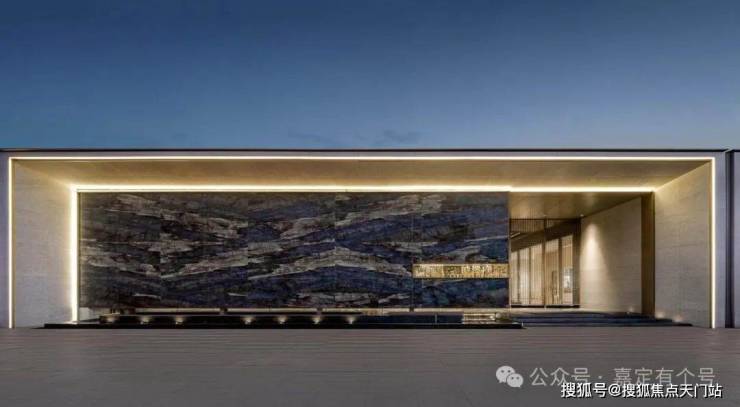 10#楼入口处的大面蓝宝石岩板,以天然纹理与金属镶嵌碰撞出低调奢华,门厅地面采用地砖拼花设计、墙面艺术漆与岩板的混搭,让空间质感层层递进。