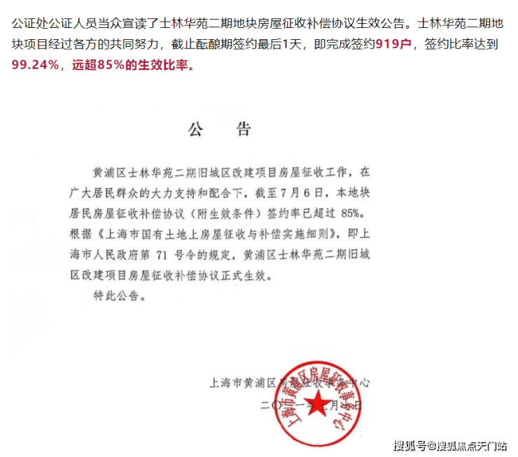 2021年1月16日,黄浦区士林华苑二期旧城区改建房屋征收一轮意愿征询投票活动在中华路706号顺利举行。意愿征询98.97%通过,标志着老西门街道旧改征收项目正式启动。