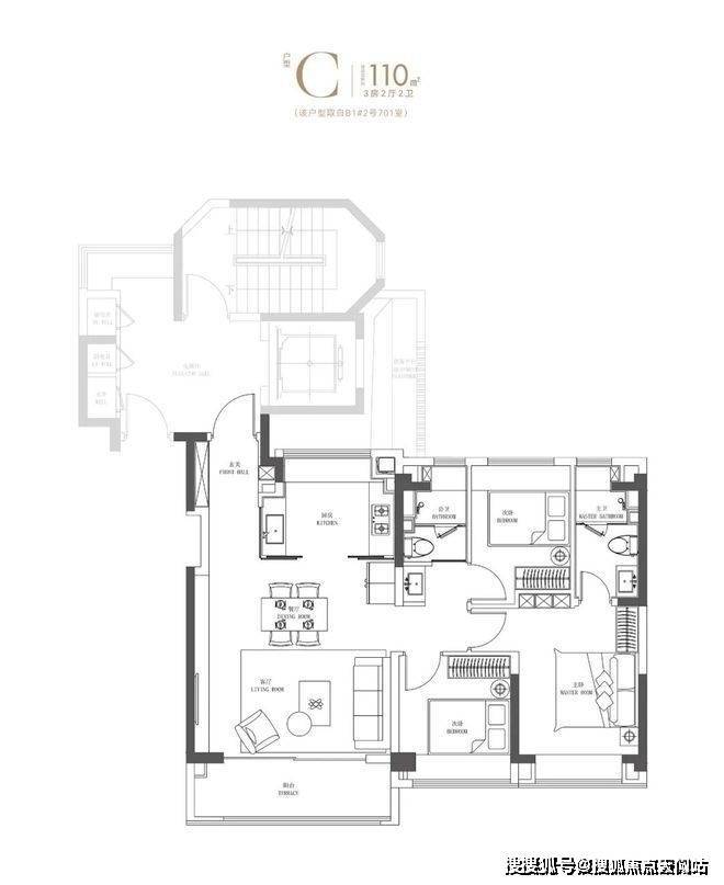 建面约108㎡3房(小高)实用且更有温度的“家庭生活中心”