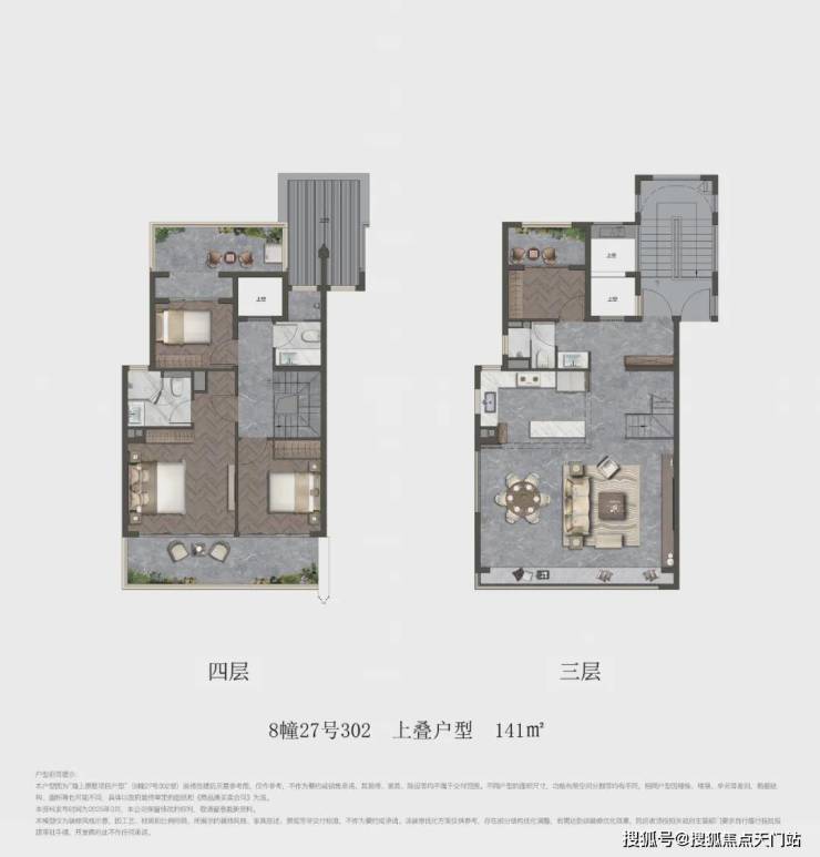 项目叠墅包含建面约141㎡上叠和建面约150㎡下叠