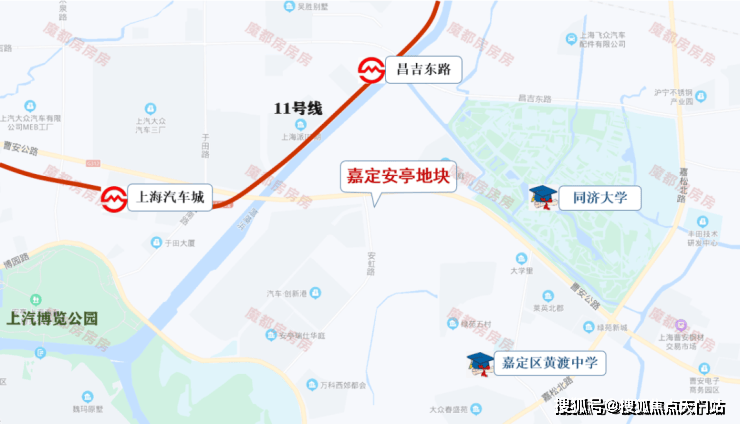 地块距离11号线昌吉东路站直线距离约1.3公里,东侧及时同济大学嘉定校区。