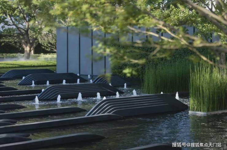 景观设计方面,保利世博天悦采用 引江入园、以水带路的手法,将滨江舒阔的国际生活平移到社区内,打造约 6万㎡景观秘境,媲美全球奢华酒店。采用大面积的留白和现代禅意的表现手法,呈现开阔舒展的质感。