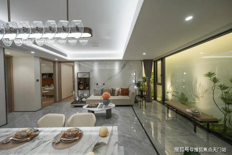 聆星客厅前方种植了松界王者—— 日本黑松,约4000万+的顶豪融创外滩壹号院的社区内,也有一颗同款;