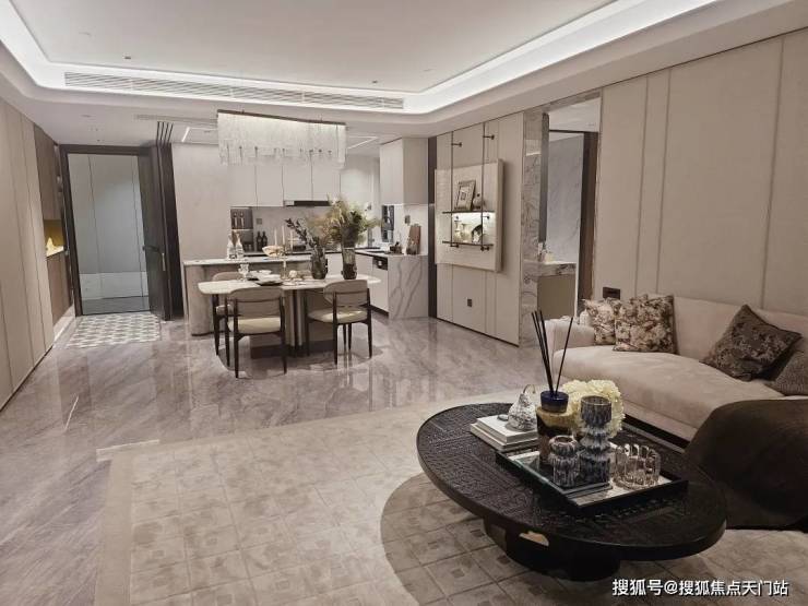 【海上·清和玺】希望业主的每一次归家,都能有属于自己的社交空间。整个前厅的接待空间不是一个过渡空间,而是一个真正为归家营造惬意分享的生活场。