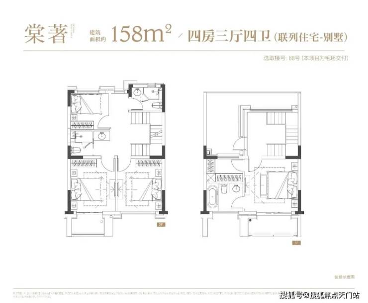 上叠户型4房2厅3卫,三层会客区,四层居住区,阳台+露台+飘窗设计,附加空间非常大,在别墅类产品中实属罕见!