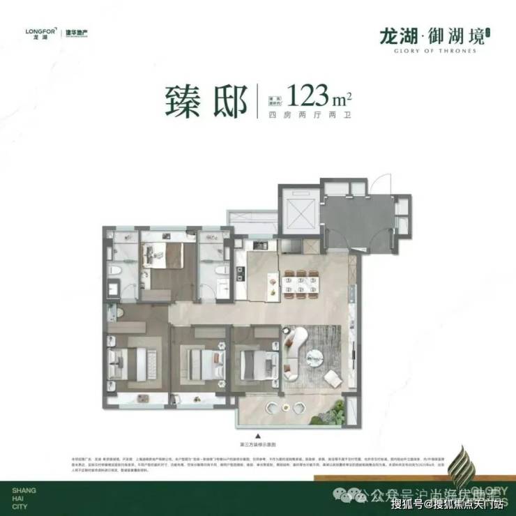 龙湖·御湖境建面123㎡4房样板间实拍视频: