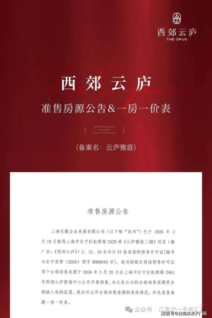最新消息: 长宁西郊“天选”改善神盘【西郊云庐】三批次已取证,主推建面约104-307㎡房源,仅37套,均价约123225元/㎡,(3.21)开启认购!