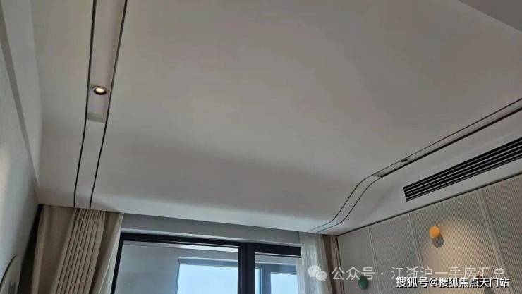 第三,弧形吊顶的应用 。在建面104㎡三房的样板间里,北卧室甚至采用了海浪形的吊顶,这对于压弯工艺的难度要求,是呈指数级上升的。