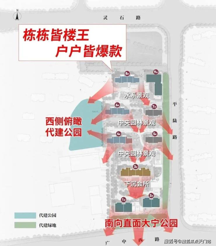 「中建·玖上琅宸」打造了一个约99米宽的超级界面门头,有非常强的豪门大宅即视感。