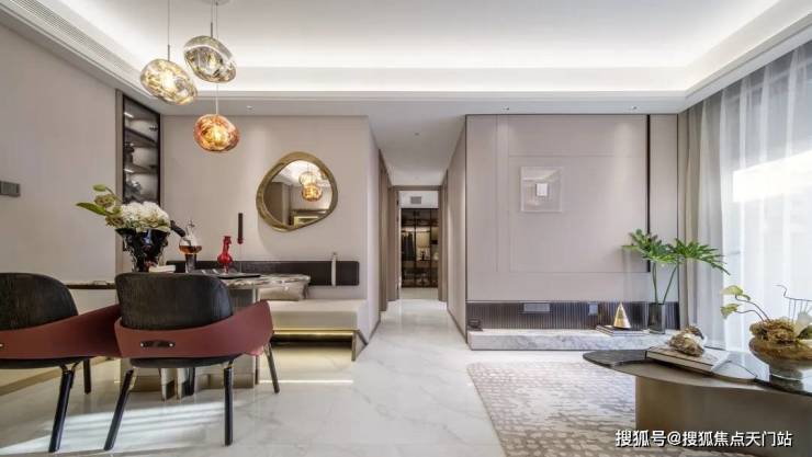 入户四合一智能门锁,全屋通高门,玄关柜柜体加长、板防变形拉直器、活动层板设计,餐客厅卧室双眼皮吊顶等,均极具巧思,更符合当代人的生活习惯。