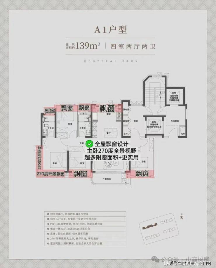亮点一:经典四开间朝南+大横厅设计,超绝采光户型!