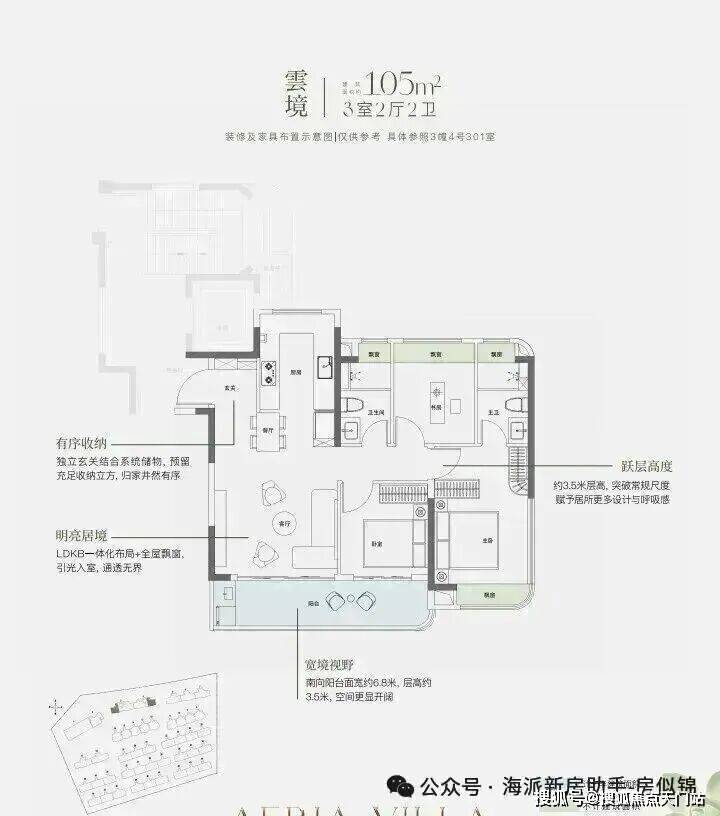 约9.8米南向面宽,配以超大尺度跑道式阳台,让室内外交融共生。