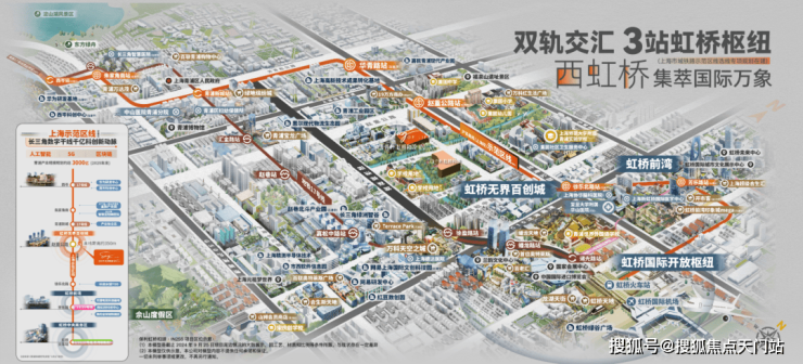 凭借示范区线(在建), 从项目出发向东3站虹桥芯,向西5站华为研发基地。