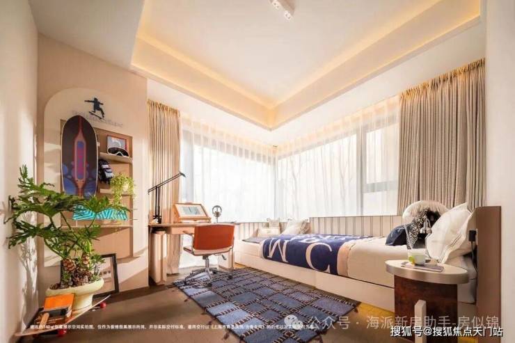 静音门锁 、配备 电动百叶的飘窗 (一键调节光线与隐私),确保卧室是一方绝对安宁的天地。