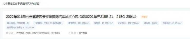 2022年6月1日,大华以40.4978亿元竞得嘉定区安亭镇国际汽车城核心区JD030201单元21BE-21、21BG-25地块【即大华梧桐樾】,成交楼板价1.9万元/㎡,地块 房地联动价4.2万元/㎡。就在昔日红盘万科西郊都会的隔壁!
