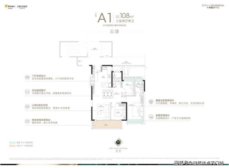 建面约108㎡的三房两厅两卫, 总价约700万起,门槛友好, 年轻家庭置业中环的不二选择。
