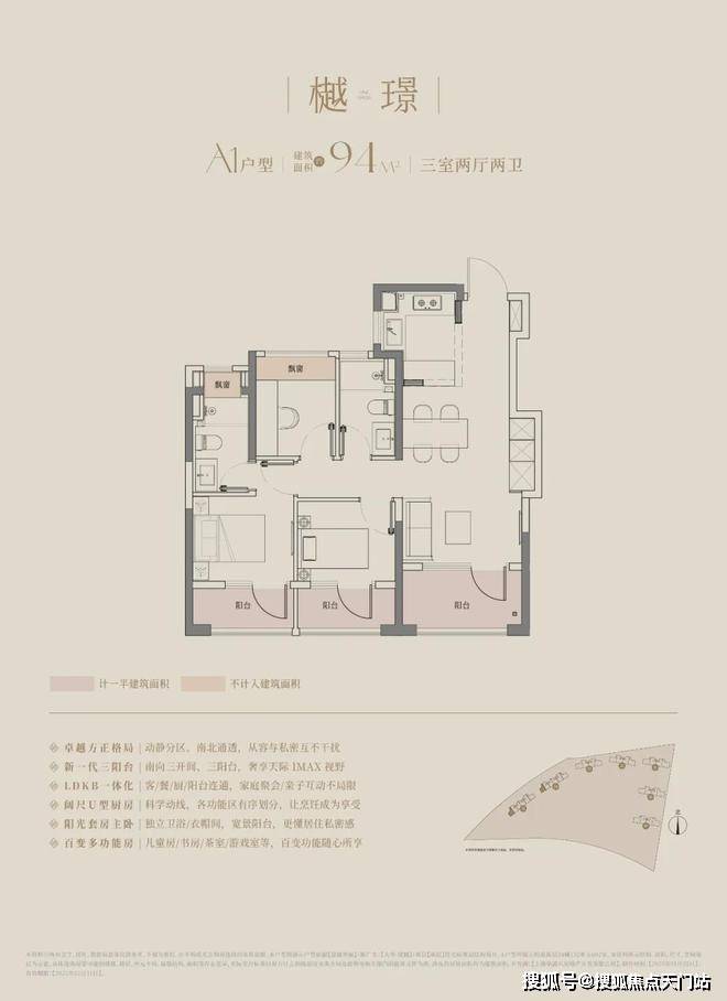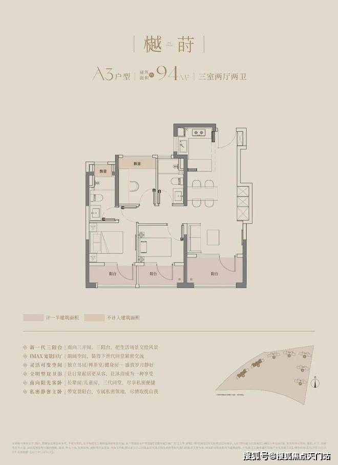在这里,高层建面约94㎡户型做到了惊人的三阳台,对比同板块内以前的标杆小区,同面积段户型只做了1个阳台。不仅数量发生质的变化,实得面积也大大增加。