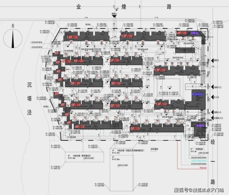 根据设计方案显示,项目拟建4幢总高13F的小高层,10幢2-5F别墅以及相关的配套建筑。