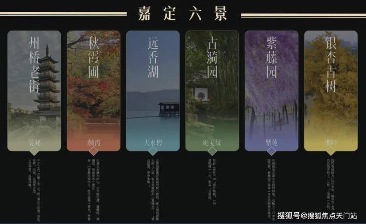 建筑们围合出的中心花园中,州桥老街、秋霞圃、远香湖、古猗园、紫藤园、银杏古树等嘉定6景被南山地产提炼、转译,形成了具有在地文化特色的6大景观主题空间。