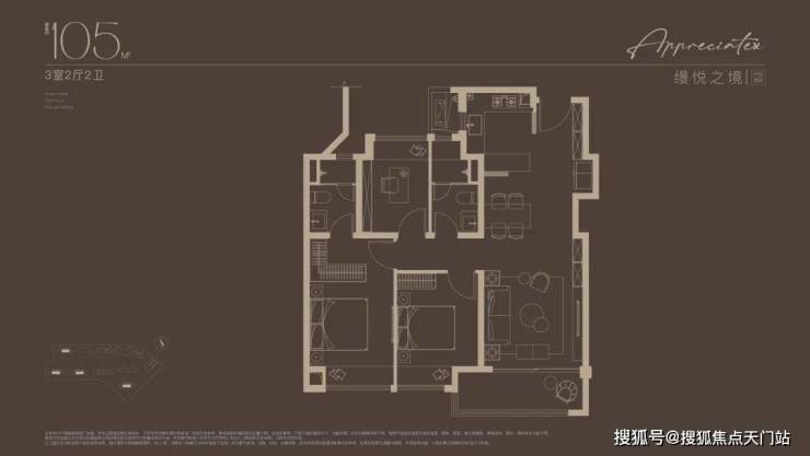 建面约105㎡3房户型,总价400万级即可上车!堪称同等总价段的改善天花板!三开间朝南,约9.6米大尺度南向面宽 ,最大程度揽光入室;客餐厅一体化 ,连接厨房和南向阳台,动线流畅,也是更大的欢乐聚场;创新研发S墙设计,预留冰箱专属位置,释放厨房使用空间 ;主卧套房设计,奢享独立卫浴和衣帽间,尽享尊崇。
