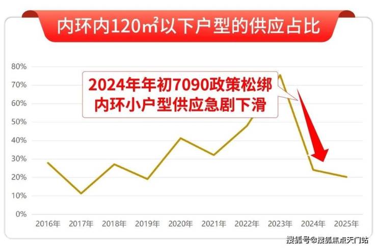 自2024年初7090政策调整后,内环新房的小户型供应迎来断崖式下滑,户型越做越大、总价越抬越高,早已成为市场常态:
