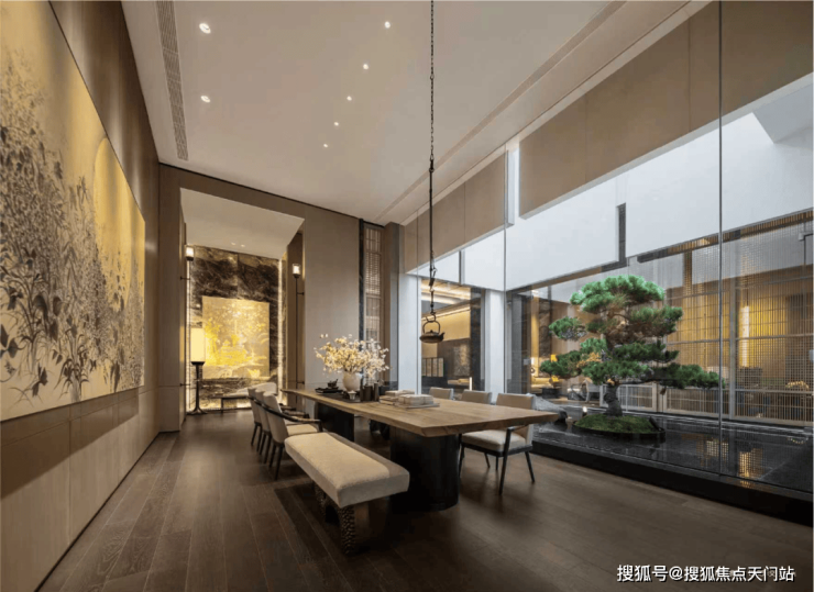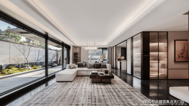 ·【院墅会客空间】约31㎡阔尺餐客厅,搭配约7米宽全景落地窗,实现庭院景观与室内生活的无界对话,每一场宴聚皆成风景。