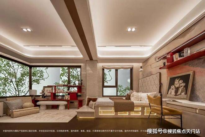 卧室的墙面是定制 3D 立体墙布,有更好的隔音效果,休息的时候帮你隔绝外界的喧嚣;微弧度设计,在心理上营造出被温柔环抱的安全感,营造出静谧的助眠氛围;飘窗也可以灵活改造多种功能。