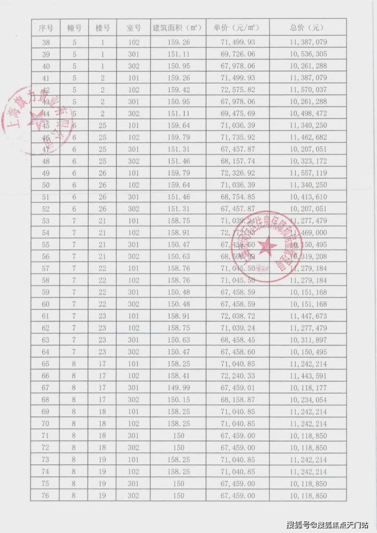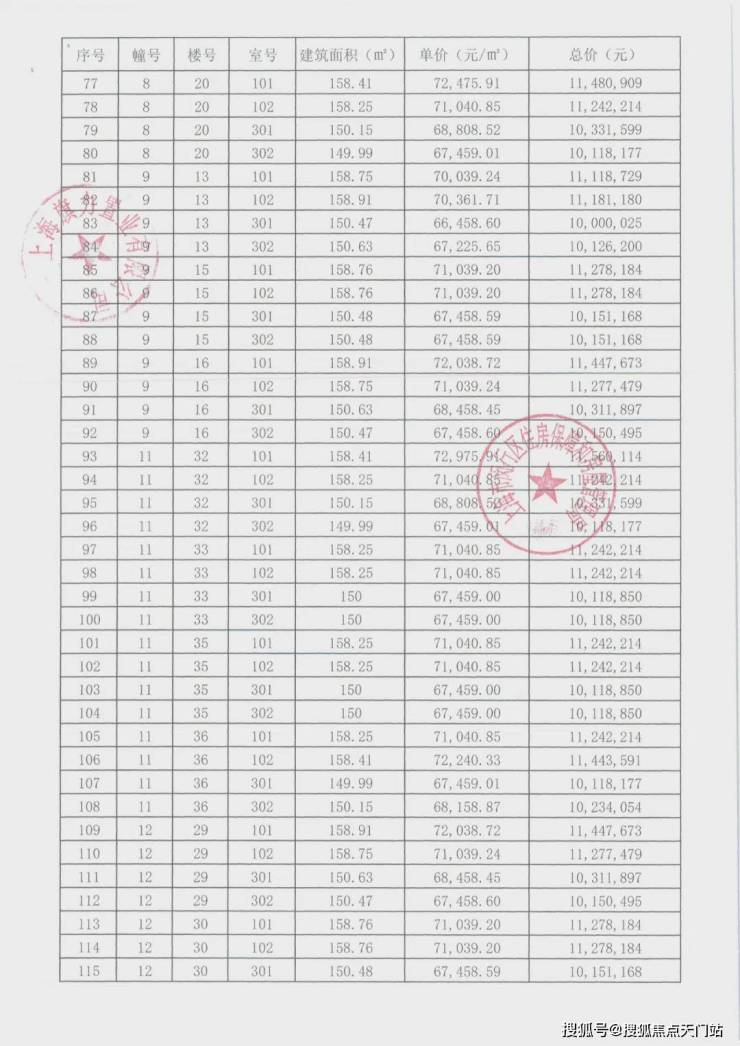 项目一房一价表▼