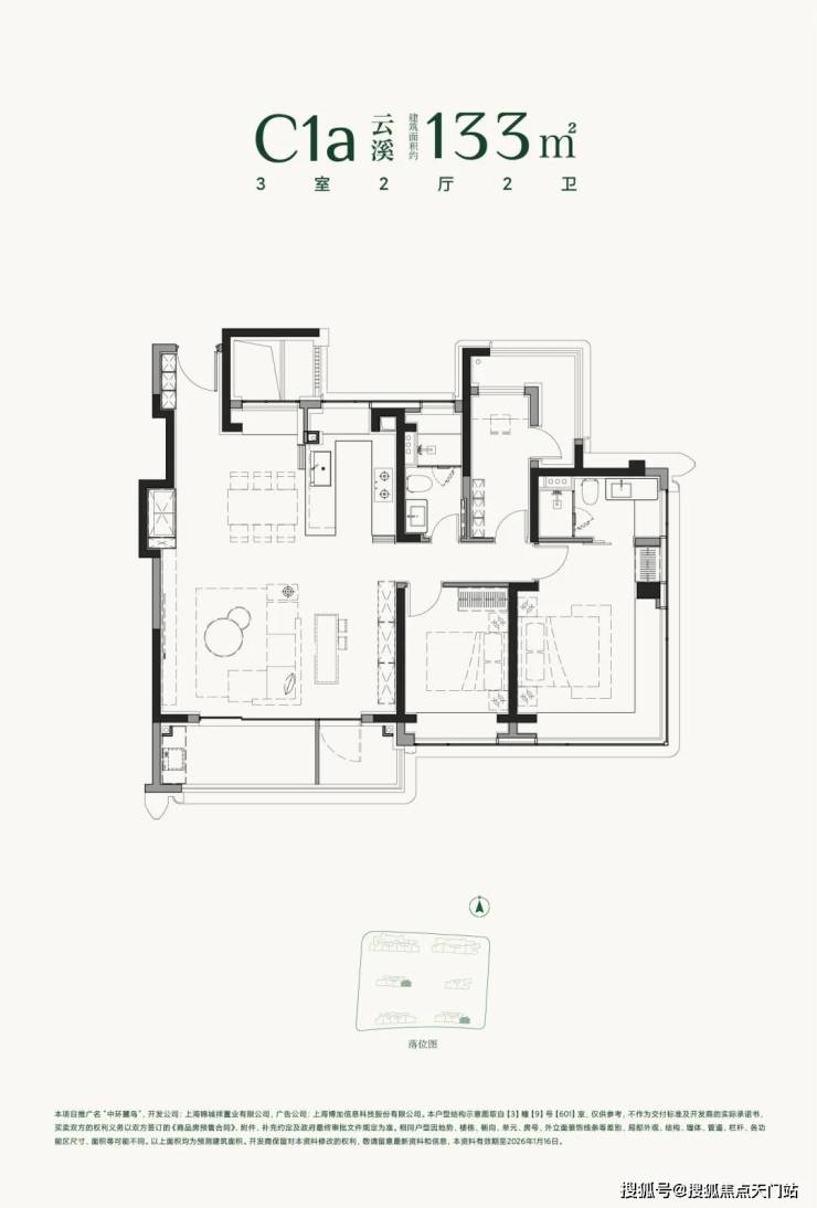 建面约133㎡3房2厅2卫:该户型在三阳台+次卧约270°转角阳台+主卧约270度转角飘窗设计的基础上再度升级。