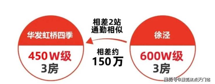 和上游板块徐泾相比,同类型房源,选择华发虹桥四季起码立省约 150