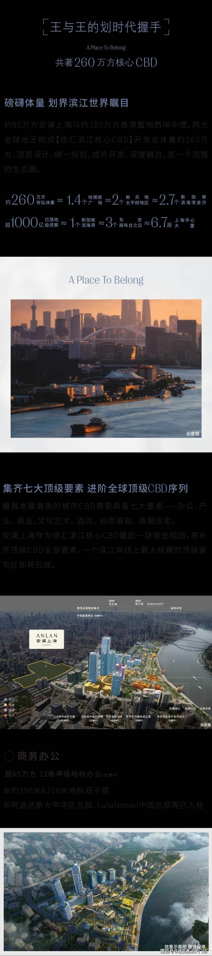 另一方面以安澜上海大盘形态为枢纽,串联徐汇滨江向心辐射,并带动徐汇区中下游板块和产业发展的全新局面。两大地王项目合力擘画约260万方崭新的徐汇滨江封面。