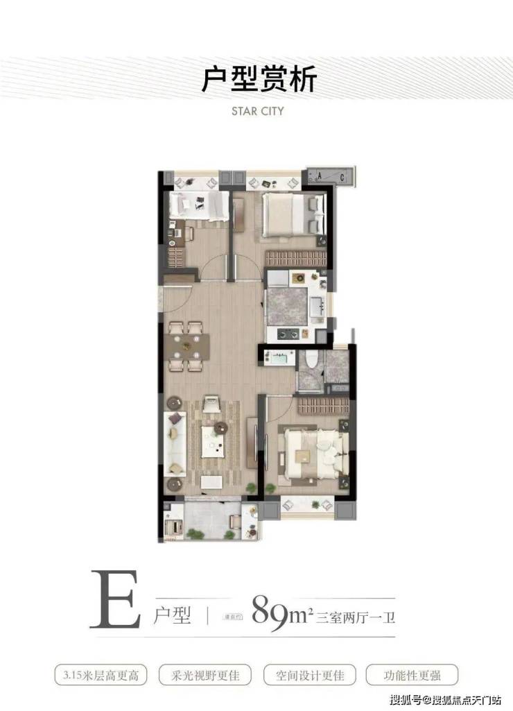 三期户型较二期更丰富,目前剩余建面约72-89㎡2房、3房,满足全龄段置业需求。