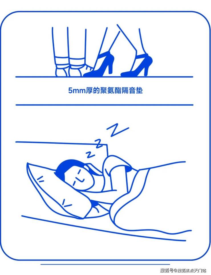 为应对这一难题,一种有效做法是在结构楼板上铺设隔音垫。这种隔音垫由聚氨酯和其他高密度材料制成,能有效吸收声音,减少楼层间的撞击与振动噪音。 然而,受制于大面积铺设所带来的较高成本这种材料 在常规住宅项目中 并未得到广泛应用 。为追求更好的层间隔声效果,贝涟C1在除盥洗室和厨房以外的所有区域均铺设5mm厚的聚氨酯隔音垫,让每一分投入都能实实在在地提升业主的生活品质。
